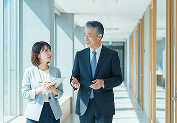 ミドルシニア・シニア人材の行動変容を促していく背景には、それぞれの人材に寄り添う伴走支援型のキャリアカウンセリングがあります。私たちは、スタッフ一人ひとりが安心して最高のパフォーマンスを発揮できるよう、お客さまとスタッフ双方との密なコミュニケーションを欠かしません。定期的な面談を通じて健康管理や職場での悩みに気を配るだけでなく、問題発生時の相談窓口を明確にすることで、派遣社員の心理的安全性を確保。スタッフのスキルとモチベーションを高く維持するサポートを徹底しています。